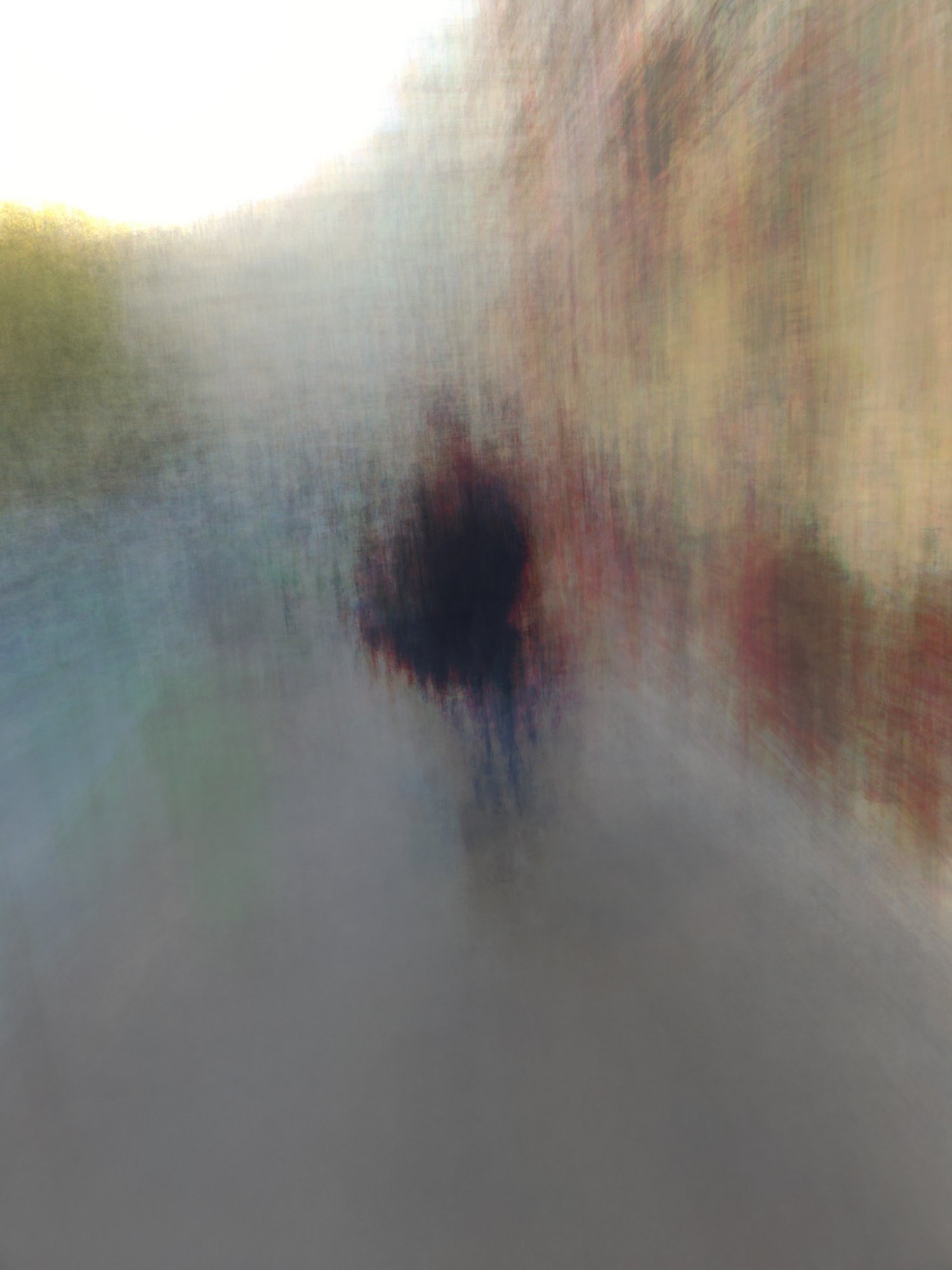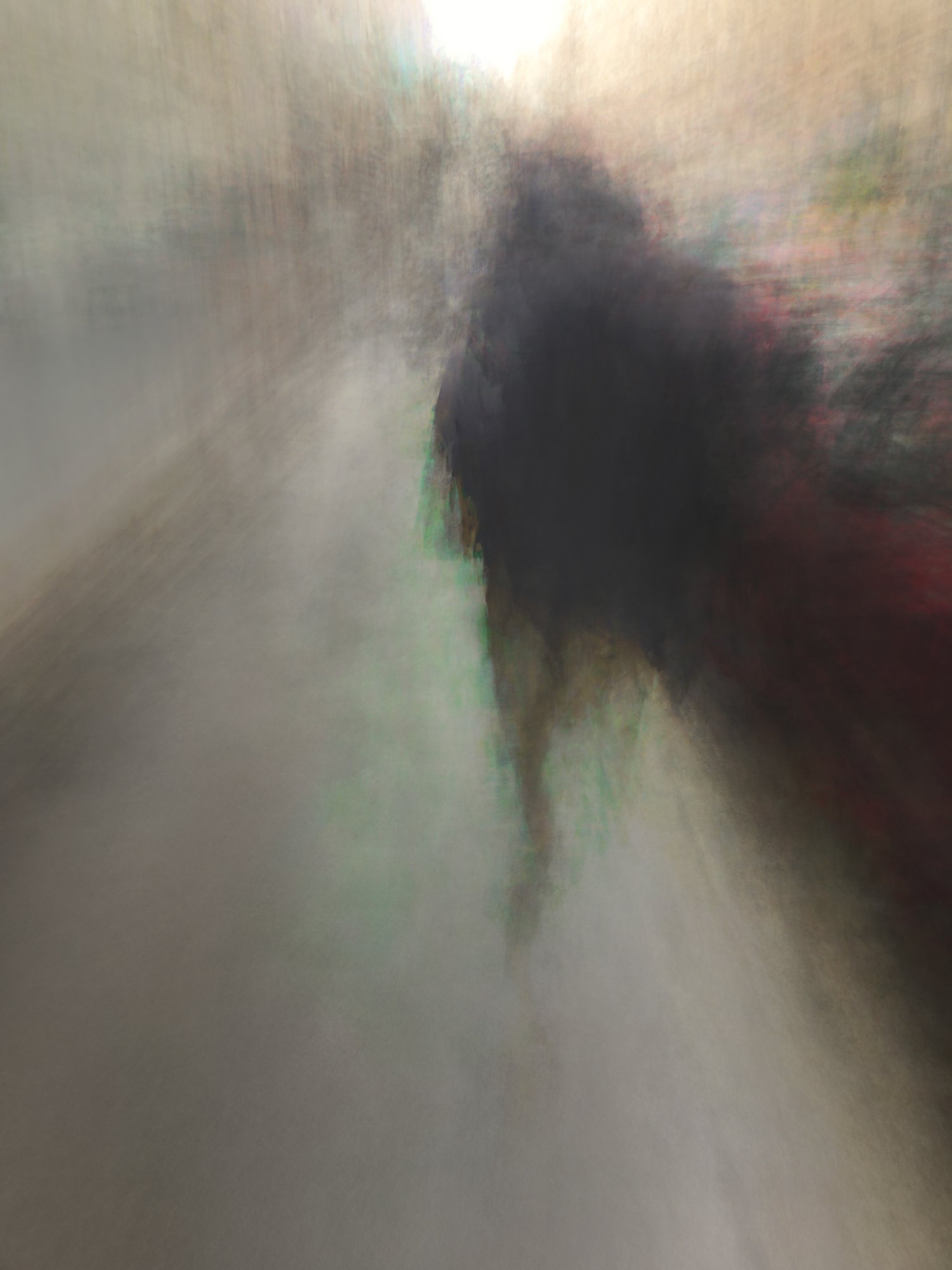 Ces images sont inscrites dans un processus intemporel, je ne souhaite pas qu’il y ait de représentation distincte de temps, de lieu ou d’espace. Seule la silhouette est visible. Il est impossible de définir qui est représenté, et où cette personne se situe. À travers cette instabilité picturale, je souhaite renforcer la notion d’errance. L’image est presque fantasmagorique, surréelle.